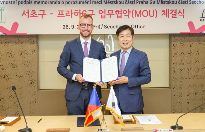 [한국기자연대] 서울 서초구는 지난 26일 구청 5층 대회의실에서 체코 프라하 6구와 문화, 예술, 교육 분야 등 상호 교류 우호증진을 위한 우호도시협정 양해각서(MOU)를 체결했다고 밝혔다.