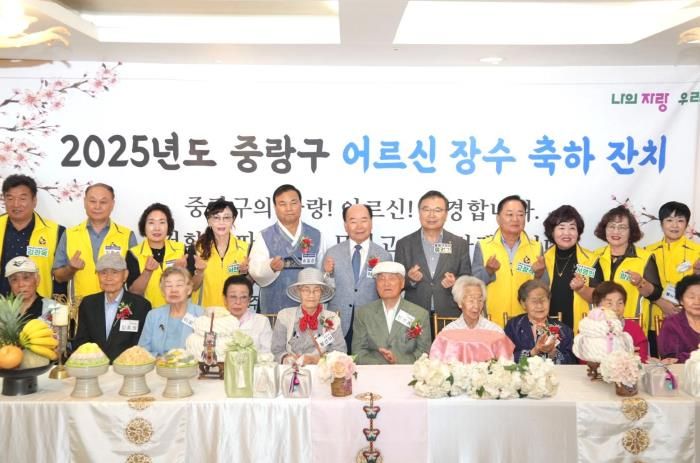 [한국기자연대] 중랑구는 지난 9월 26일, 중랑구 효사랑봉사회 주관으로 ‘2025년 중랑구 어르신 장수 축하 잔치’를 열고 동별 최고령 어르신과 가족들을 초청해 감사의 마음을 전하는 뜻깊은 시간을 가졌다.