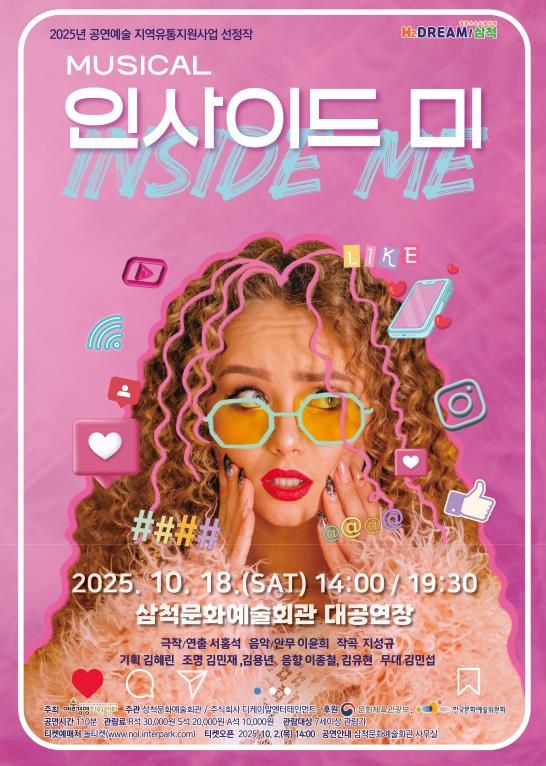 [한국기자연대] 삼척시는 2025년 공연예술 유통지원사업의 일환으로 뮤지컬 인사이드 미를 오는 10월 18일 삼척문화예술회관 대공연장에서 선보인다.