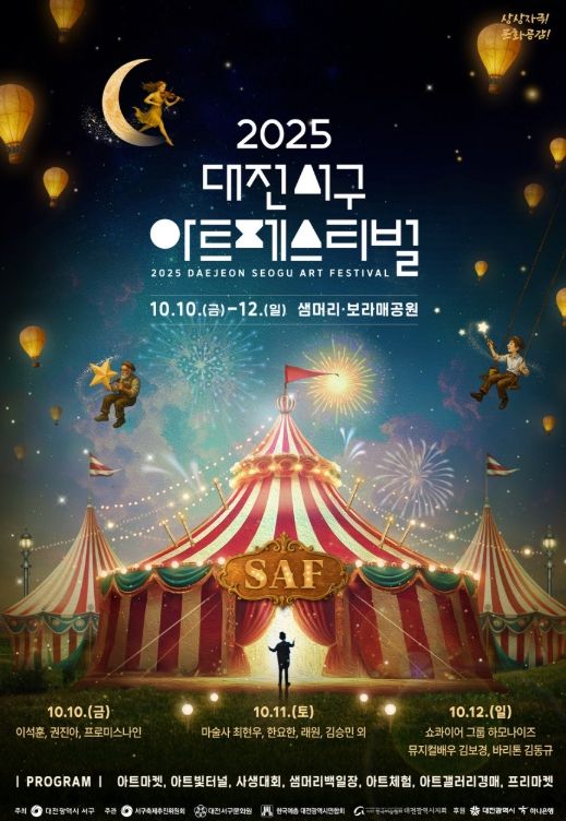 [한국기자연대] 대전 서구는 10월 10일부터 12일까지 3일간 서구청 앞 샘머리공원과 보라매공원 일원에서 ‘2025 대전 서구 아트페스티벌’을 개최한다.