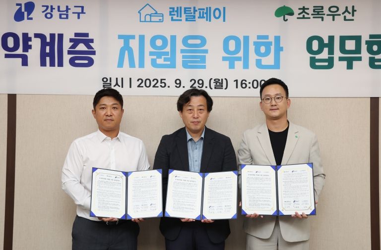[한국기자연대] 꿈이 모이는 도시, 미래를 그리는 강남구가 9월 29일 렌탈페이, 초록우산과 함께 주거취약계층 지원을 위한 3자간 업무협약(MOU)을 체결했다.