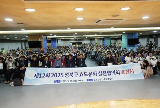 [한국기자연대] 성북구 효도문화실천협의회가 10월 경로의 달을 앞두고 9월 25일 성북구청 다목적홀에서 ‘제12회 성북구 효도문화실천협의회 효잔치’를 열었다. 이날 행사에는 지역 독거어르신과 효행 표창자, 주민과 초청 인사 등 300여 명이 참석해 경로효친의 의미를 함께 나눴다.