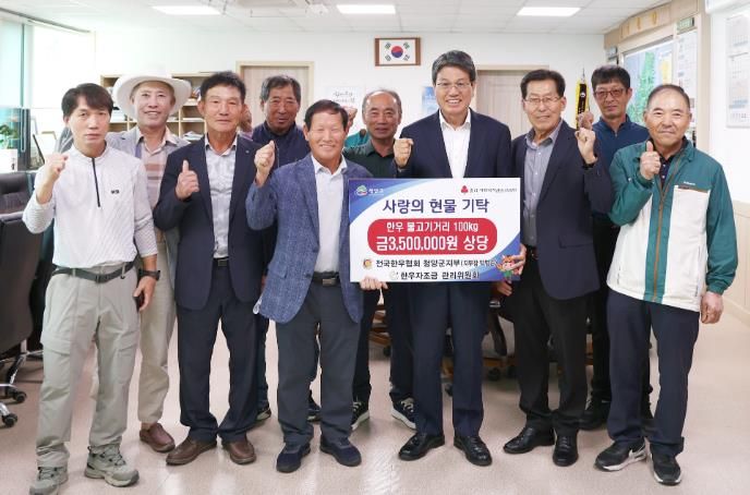 [한국기자연대] 청양군은 전국한우협회 청양군지부 한우자조금관리위원회가 추석 명절을 앞둔 지난 29일 한우 불고기거리 100kg(350만원 상당)을 기탁하며 이웃사랑을 실천했다고 밝혔다.