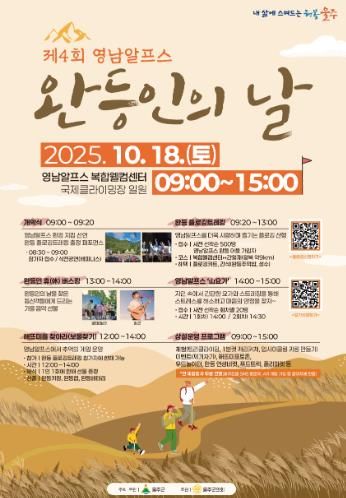 [한국기자연대] 울산 울주군이 10월 18일 영남알프스 복합웰컴센터에서 ‘제4회 영남알프스 완등인의 날’ 행사를 개최한다고 30일 밝혔다.