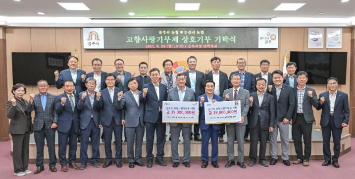 이번 상호교차 기부는 지난 6월 23일부터 8월 31일까지 약 두 달간 진행됐으며, 공주시·논산시 농협 임직원 총 786명이 자발적으로 참여해 기관별 3,900만 원씩, 총 7,800만 원의 기부금이 조성됐다.