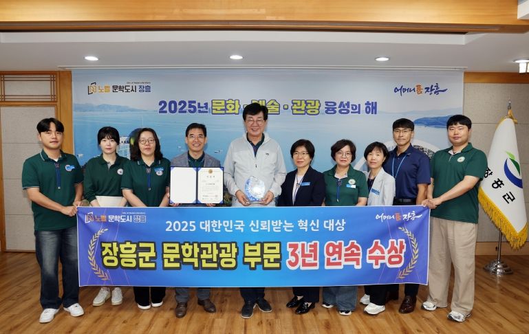 [한국기자연대] 장흥군이 9월 29일 개최한 ‘2025 대한민국 신뢰받는 혁신대상’시상식에서 문학관광 부문 공공혁신 대상을 수상했다고 밝혔다.