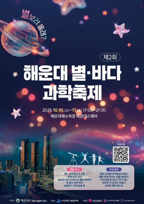 [한국기자연대] 해운대구는 부산과학기술협의회와 함께 10월 10일과 11일 오후 5시부터 9시 30분까지 해운대해수욕장 해운대스퀘어에서 ‘제2회 해운대 별, 바다 과학축제’를 연다.