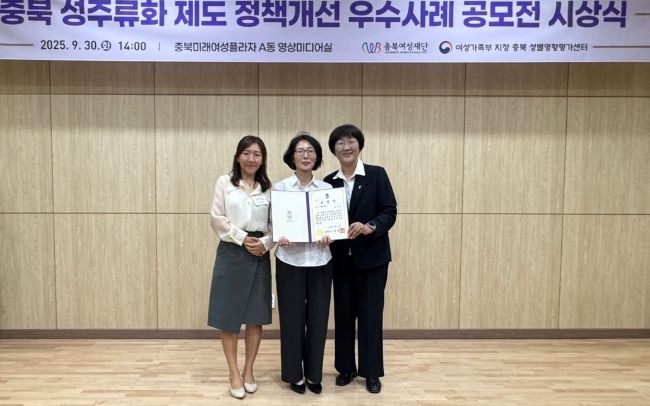 [한국기자연대] 청주시는 30일 충북미래여성플라자에서 개최된 ‘충북 성주류화 제도 정책개선 우수사례 시상식’에서 2025년 성인지 정책 유공으로 도지사 표창을 수상했다.