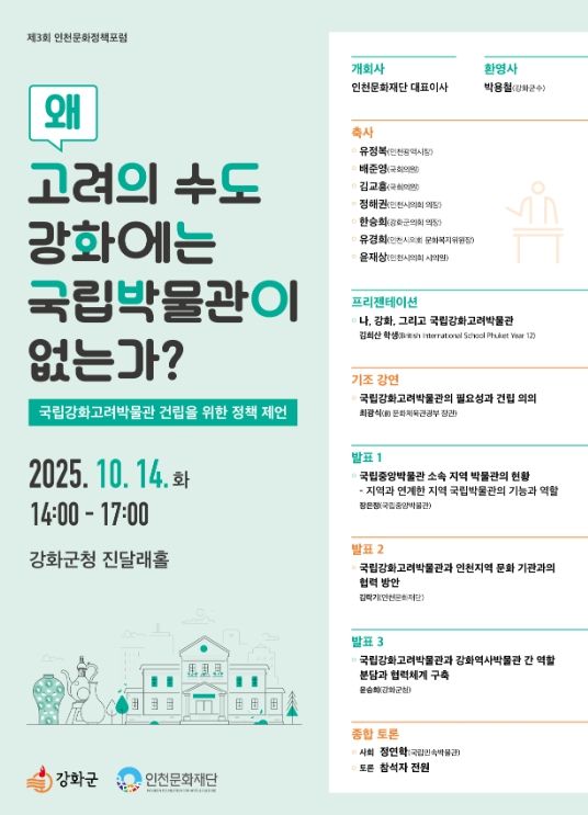 이번 포럼은 강화군과 인천문화재단이 공동으로 주최하며, 39년간 고려의 수도였던 강화에 국립박물관이 없는 현실을 논의의 출발점으로 삼고 있다.