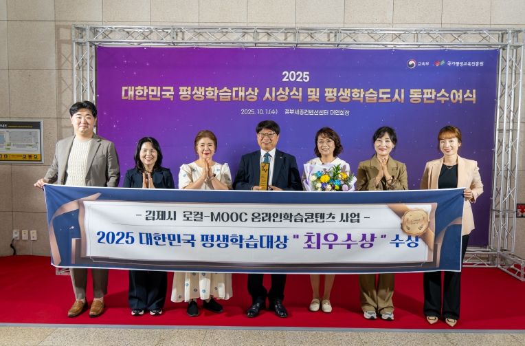 [한국기자연대] 김제시가 생활 속 평생학습을 실천하고 있는 우수사례를 발굴해 시상하는 '제22회 대한민국 평생학습대상'에서 '디지털 학습시대 무형의 학습자산을 만드는 김제형 로컬-MOOC 구축사업'으로 올해의 평생학습사업 최우수상을 받았다.