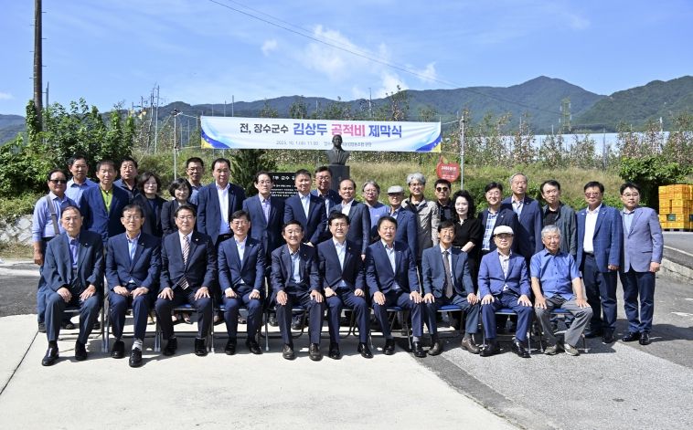 [한국기자연대] 장수군은 지난 1일 장수사과원예협동조합 광장에서 김상두 전 장수군수의 공적비 제막식을 거행했다고 밝혔다.