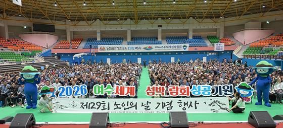 특히 2026여수세계섬박람회 성공개최를 응원하는 퍼포먼스가 진행돼 행사장에 모인 어르신과 내빈이 함께 섬박람회 성공을 기원하며 힘찬 구호를 외쳤다.