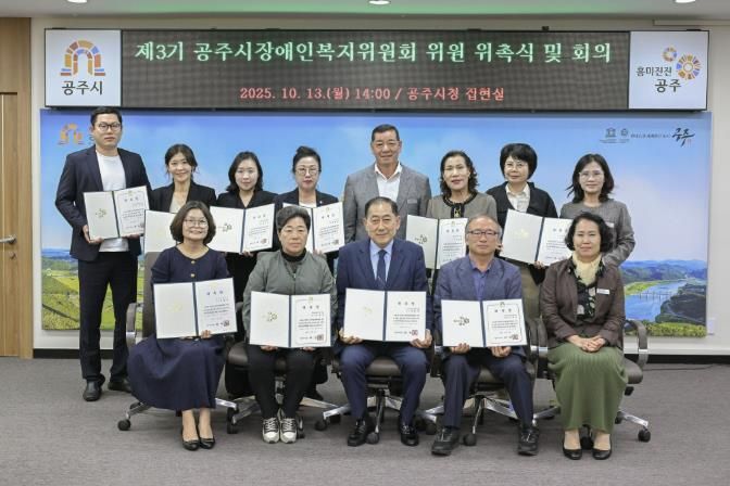 [한국기자연대] 공주시는 지난 13일 시청 집현실에서 ‘제3기 공주시 장애인복지위원회 위원 위촉식 및 회의’를 개최하고, 민관이 함께 장애인 정책 현안 해결에 나서기 위한 본격적인 활동을 시작했다고 밝혔다.
