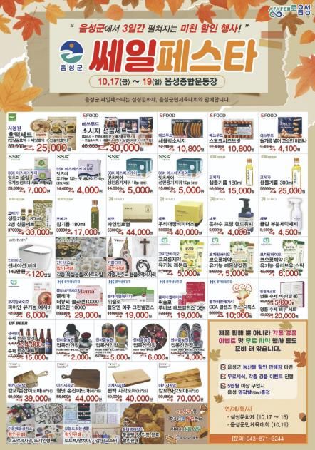 음성군 쎄일페스타는 작년 9월에 처음 열렸으며, 관내 기업 제품과 음성 명작 농산물을 저렴하게 구매할 수 있는 행사이다.