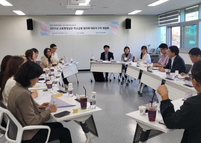 [한국기자연대] 경기도김포교육지원청은 2025. 10. 15. 10:30, 김포교육지원청 2층 이룸실에서 유치원, 초등학교, 중학교, 고등학교, 특수학교별 지구 단위로 구성된 교육행정실장 지역별 협의회 회장 및 총무 등 16명과 김포교육지원청 행정과장 등이 참석한 가운데 정담회를 개최했다.