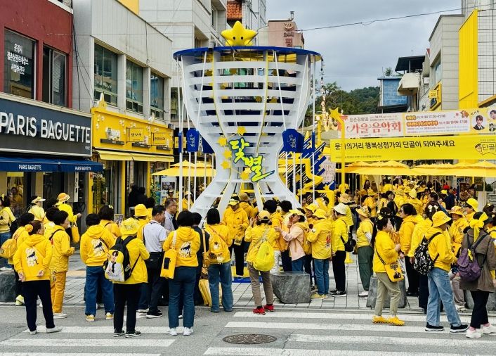 [한국기자연대] 문경시는 지난 19일 점촌점빵길 ‘닻별 테마길’에서 6천여 명의 관람객이 몰리며 '점촌점빵길 가을음악회'을 성황리에 마쳤고, 특히 1,500여 명(대형버스 38대)의 트로트스타 팬덤‘닻별’이 전국 각지에서 문경을 방문하여 닻별 테마길을 즐겼다.