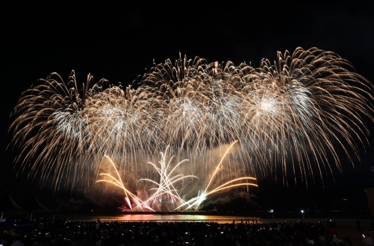 이어 1만 5천여 발의 불꽃이 바다 위로 터지며 장관을 이뤘고, 해변 곳곳에서는 관람객의 탄성이 이어졌다.