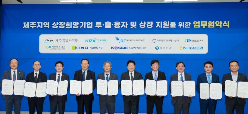 협약에 따라 앞으로 3년간 제주도는 상장희망기업의 투자·출자·융자 및 상장과정에 필요한 행정·재정적 지원을 담당한다.