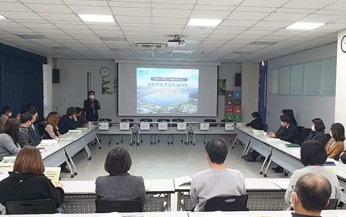 유문종 전 수원시 제2부시장이 좌장을 맡은 토론회는 오기영 수원시공원녹지사업소장의 ‘공동주택 조경 실태와 개선 방안’, 하유미 성균관대학교 조경학과 교수의 ‘공동주택 녹지공간 관리·활용을 위한 방안’ 등 주제 발표와 패널 토론 등으로 진행됐다.