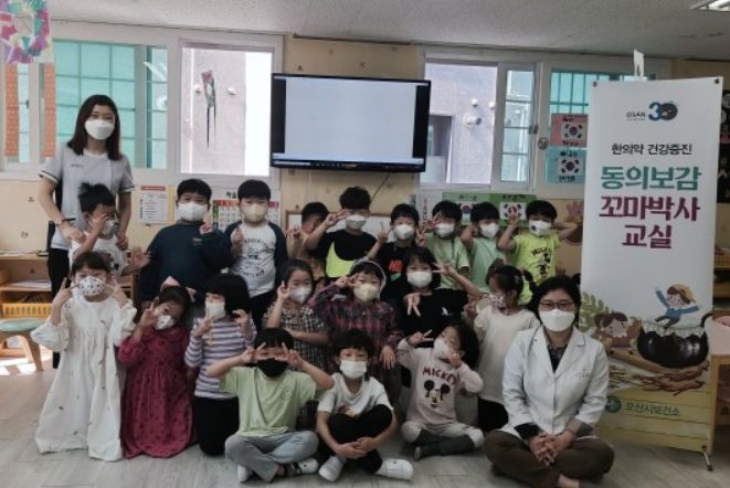 교육은 ▲한약재(감초, 진피, 영지, 모과) 오감 체험 ▲허준 교육영상 시청 ▲색칠공부(진피, 선퇴) ▲쑥쑥 크는 어린이 도인체조 등이 진행됐다.