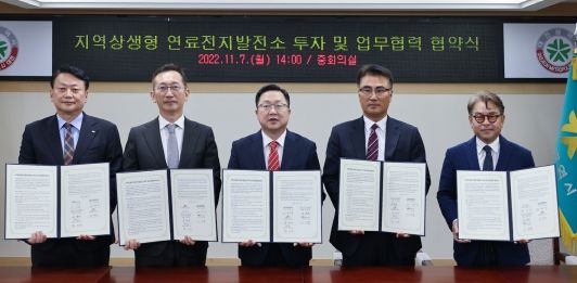 [한국기자연대] 대전시는 7일 대전시청에서 SK가스㈜, LS일렉트릭㈜, CNCITY에너지㈜, 주민 추진위원회와 ‘지역상생형 연료전지발전소’ 투자 및 업무 협력 협약을 체결했다고 밝혔다.