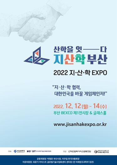 [한국기자연대] 부산시는 한국과학기술단체총연합회(회장 이우일)와 공동으로 오는 12월 12일부터 14일까지 3일간 벡스코 제1전시장에서 '2022 지산학 엑스포'를 개최한다고 밝혔다.