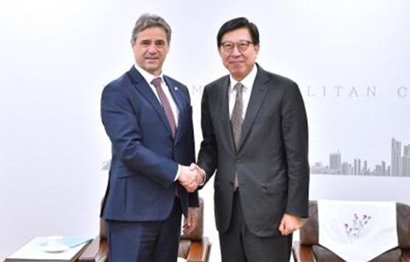 [한국기자연대] 박형준 부산시장이 15일 오전 시청 국제의전실에서 이슈트반 새르더해이(Istvan Szerdahelyi) 주한헝가리대사를 만나 부산시와 헝가리 간 교류·협력 방안을 논의했다.