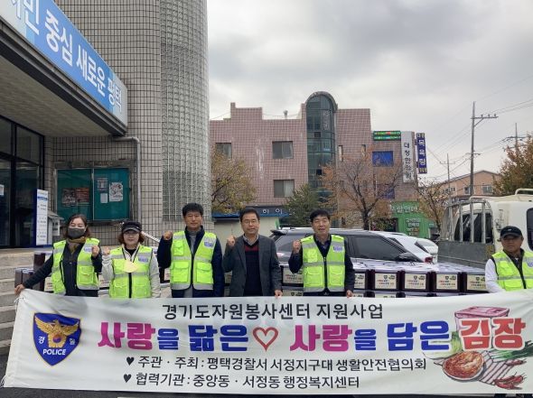 [한국기자연대] 평택경찰서 서정지구대 생활안전협의회(서정지구대 지구대장 윤인수, 협의회장 이병철)는 지난 14일 ‘사랑을 닮은, 사랑을 담은 김장김치 나눔 행사’를 가졌다.