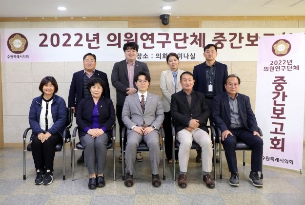 [한국기자연대] 수원특례시의회 의원연구단체인 ‘2022년 수원시의회 조례 발전 연구 포럼 연구회(대표의원 최원용)’가 16일 의회 세미나실에서 연구활동 중간보고회를 개최했다.