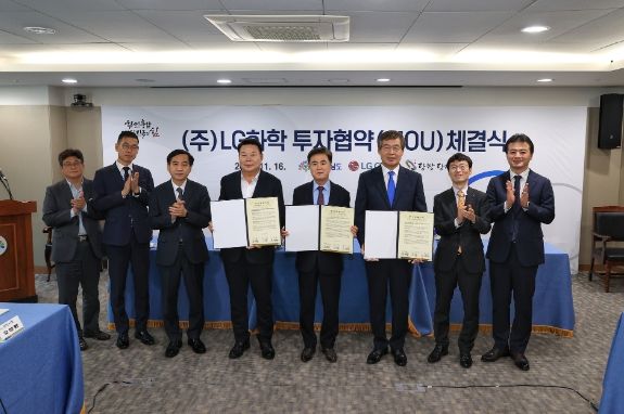 [한국기자연대] 당진시가 LG화학과 2018년도 체결된 투자협약의 사업계획과 투자액이 변경됨에 따라 16일 충청남도청에서 다시 투자 협약했다.