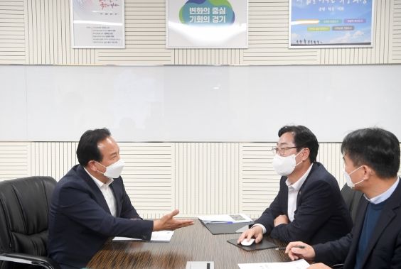 [한국기자연대] 이권재 오산시장과 정명근 화성시장이 지난 16일 화성시 동탄출장소에서 만나 지방도 만성 교통정체를 해소하기 위해 의견을 모았다.