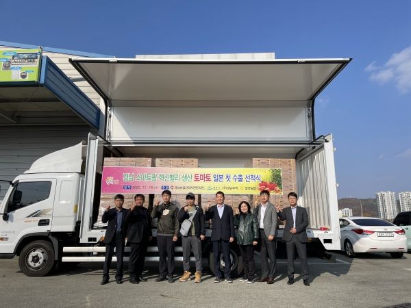 이날 수출 선적식에는 경남 스마트팜 혁신밸리 청년창업농을 비롯해 손재규 밀양시농업기술센터소장, 박형계 밀양농협 공판장지점장, 밀양시 직원 등이 참석해 스마트팜 혁신밸리에서 생산된 토마토의 일본 첫 수출을 기념했다.