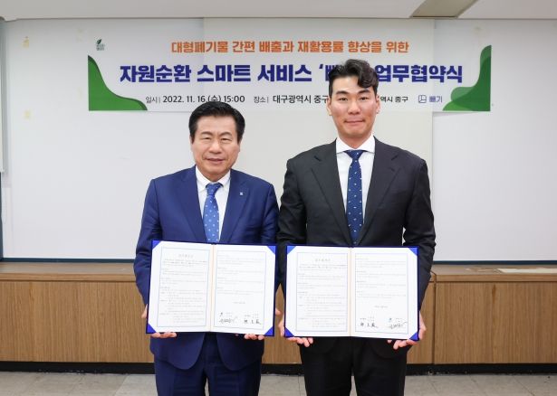 [한국기자연대] 대구시 중구는 지난 16일 대형폐기물 간편 배출 서비스 도입을 위해 ㈜같다와 업무협약을 체결했다.