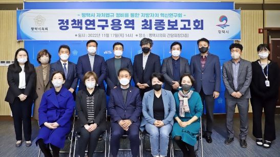 [한국기자연대] 평택시의회 ‘평택시 자치법규 정비를 통한 지방자치 혁신연구회(대표의원 최재영)’는 17일 시의회 3층 간담회장에서 정책연구용역 최종보고회를 개최했다.