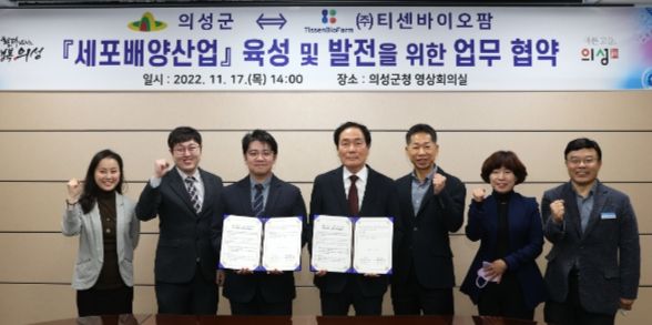 [한국기자연대] 의성군과 ㈜티센바이오팜은 11월 17일 군청 영상회의실에서 업무협약을 맺고 의성군 세포배양산업 발전을 위해 상호 협력하기로 했다.