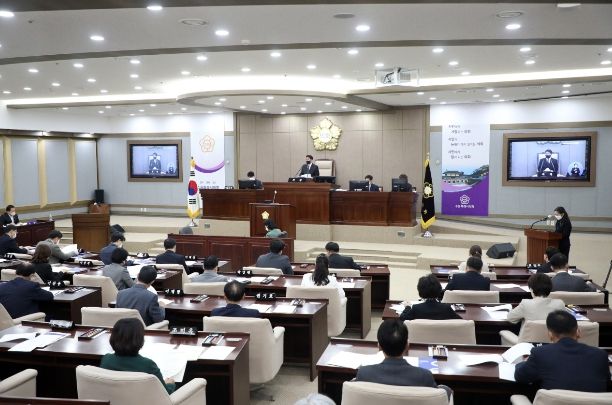 김기정 수원특례시의장은 개회사 및 의정연설을 통해 △정책검증 청문회 도입 △수원시 조례 일제 조사 실시 △정책·예산TF팀 구성 등 새롭게 출발한 제12대 의회의 굵직한 성과에 대해 말했다.