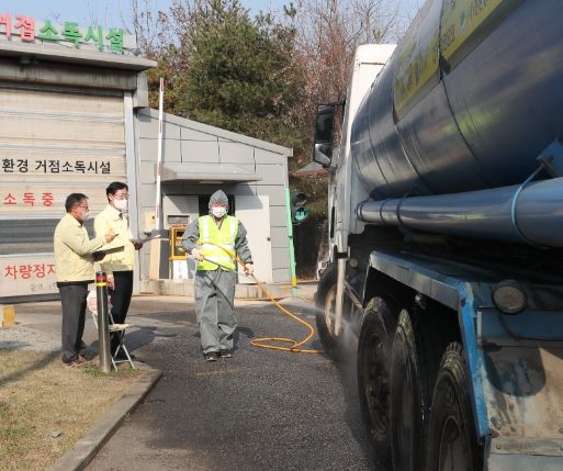 정 시장은 이날 현장 방문에서 거점소독시설 운영 현황에 대한 보고를 받고 시설을 이용하는 차량 및 운전자에 대한 소독실태 점검, 소독필증 발급상황 등을 점검했다.