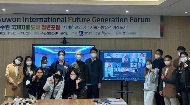 [한국기자연대] 수원시는 25일부터 27일까지 수원컨벤션센터 화상회의실에서 대면·비대면 병행 방식으로 ‘2022 수원 국제자매도시 청년포럼-세계 청년의 꿈 : 지속가능발전 미래도시’를 개최했다.