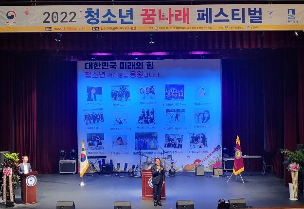 [한국기자연대] 법무부 청소년 범죄예방위원 수원지역 장안지구위원회는 29일, 장안구민회관 한누리아트홀에서 아동·청소년들의 재능과 끼를 발산하고, 가족 및 친구와 화합하는 소통의 시간을 마련하고자 ‘2022 청소년 꿈나래 페스티벌’을 개최했다.