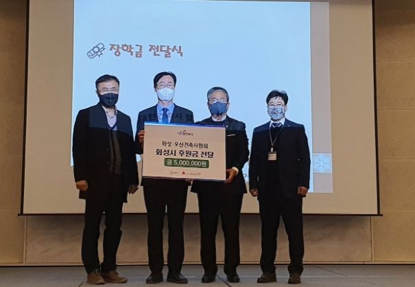 [한국기자연대] 대한건축사협회 화성·오산지역건축사회가 이·취임식을 기념해 화성시 저소득층을 위한 후원금 5백만 원을 전달했다.