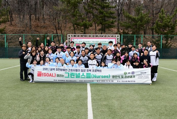 안산시는 지난 10일 안산시청 내 풋살장에서 골(Goal) 때리는 그린널스들(Nurses) 창단식 및 친선경기가 진행됐다고 11일 밝혔다.