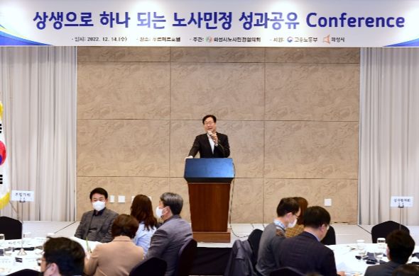 14일 화성시 안녕동 푸르미르 호텔에서 열린 ‘노사민정 성과공유 콘퍼런스’에는 정명근 화성시장을 비롯해 화성시 노사민정 참여 기관·단체 관계자 80여명이 참여하는 가운데 개최됐다. 이날 컨퍼런스에서는 올해 화성시 선진 노사문화 발전에 기여한 유공자 7명에 대한 화성시장 표창과 함께, 올해 화성시노사민정협의회가 거둔 성과를 공유하고 노사민정 참여 기관·단체들이 기업성장 지원, 산업연계 일자리 창출, 노동시장 상생협력을 통한 일자리 질 개선방향 등에 대해 함께 모색하는 시간을 가졌다.