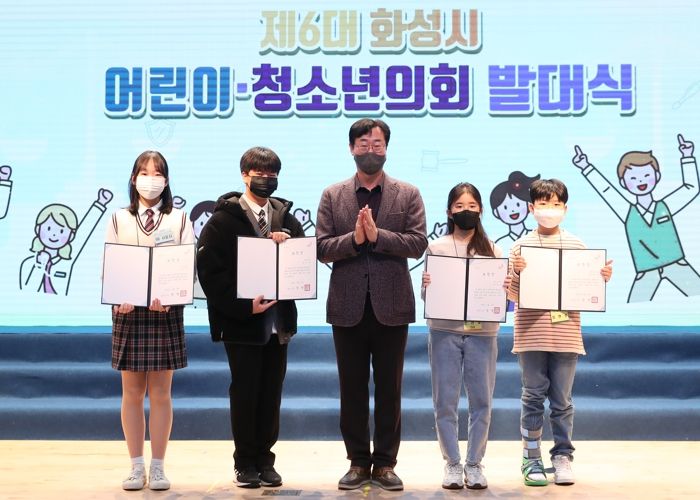 또한 화성시가 지난달 유니세프로부터 아동친화도시 상위단계 인증을 획득함에 따라 제6대 어린이청소년의회 부의장이 시장에게 인증서와 현판을 전달하는 퍼포먼스도 펼쳐졌다.