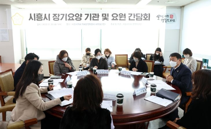 이날 간담회에는 국민건강보험공단 시흥지사, 시흥시노인장기요양기관 협회, 관계 공무원 등 10여 명이 참석해 장기요양기관 운영상 어려운 점을 허심탄회하게 나누고, 조례 제정 등 장기요양기관 종사자의 근무환경을 개선하기 위한 다양한 지원 방안에 대해 의견을 나눴다.
