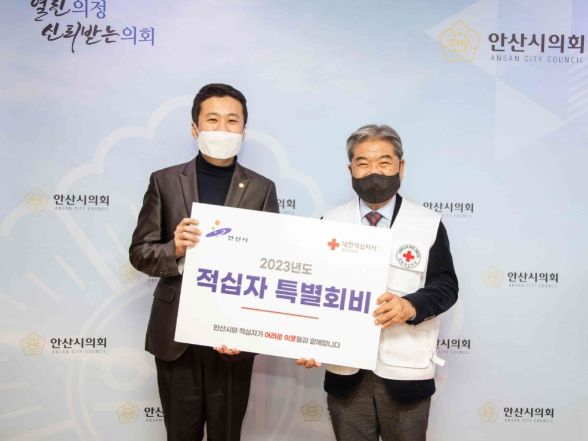 [한국기자연대] 안산시의회(의장 송바우나)가 22일 대한적십자사 경기도지사에 2023년 적십자 특별회비 100만원을 전달했다.