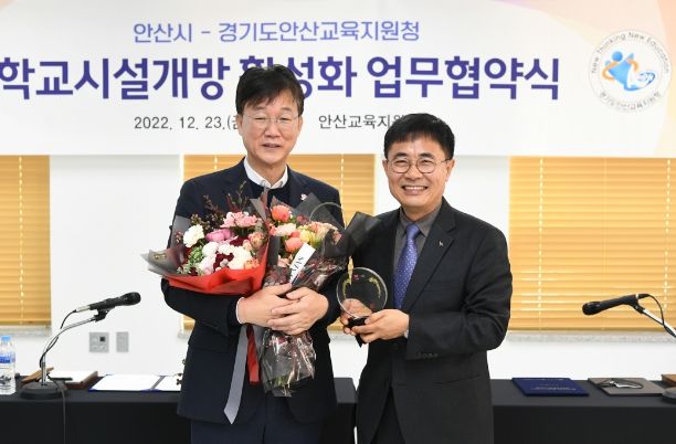 이날 협약식은 이민근 시장과 홍정표 교육장 등 양 기관 간부공무원 37명이 참석한 가운데 진행됐다. 이번 협약은 안산시는 학교에 행정적·재정적 지원을 확대하고 학교는 교내 체육관, 주차장, 도서관, 유휴교실 등 유휴 공간을 지역주민이 사용할 수 있도록 개방하는 것을 골자로 한다.
