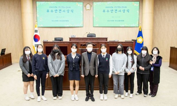 [한국기자연대] 안산시의회가 지난 23일 ‘2022 안산청소년의회 우수안건 시상식’을 개최해 우수 정책을 제안한 청소년의원들을 시상했다.