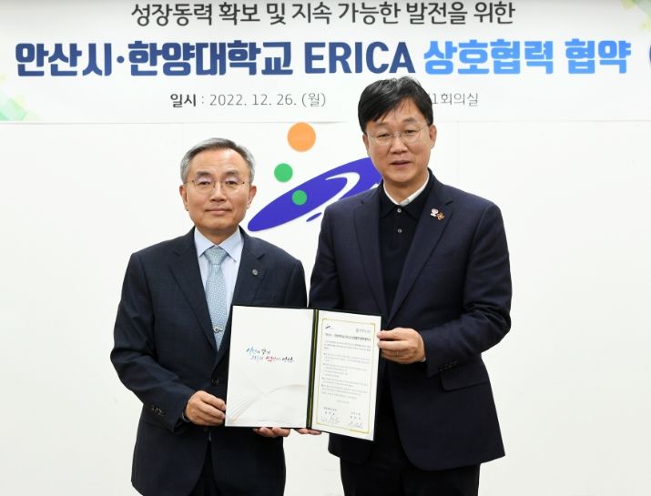 [한국기자연대] 안산시는 지난 26일 시의 새로운 성장동력을 확보하고 지속가능한 발전을 도모하기 위해 한양대학교 ERICA(총장 김우승)와 상생발전 협약을 체결했다고 27일 밝혔다.