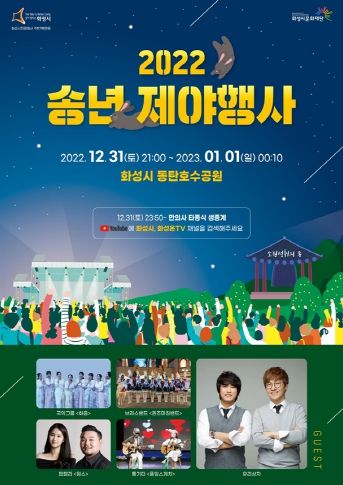 제야콘서트에는 전 세대를 아우르는 인기그룹 ‘유리상자’와 남녀 듀엣 팝페라 ‘원스’, 감성 통기타 ‘풀잎스케치’, 화성시 국악그룹 ‘화음’, 브라스밴드 ‘퀸즈 마칭밴드’등의 무대가 준비됐다.
