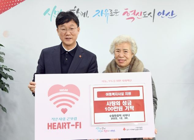 [한국기자연대] 안산시는 30일 상록구에 위치한 수정한증막 사우나로부터 취약계층 아동을 위한 후원금 1백만 원을 기탁받았다.